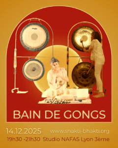 4 gongs seront à l’honneur pour ce bain de gongs : un gong solaire pour se relier au Soleil, un gong relié à Vénus pour l’Amour, un gong symphonique aux multiples fréquences et un gong népalais pour l’ancrage
