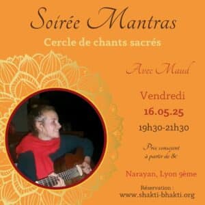 Avec Maud : La pratique de guitare/chant prend une place importante dans ma vie depuis déjà 15 ans ; elle m’accompagne, me soigne et m’aide à grandir. Depuis 3 ans je pratique le chant de mantras et cela m’a confirmé que notre puissance vibratoire passe aussi par la voix, que j’aime partager, échanger, Connectons nous ensemble à l’unis-son A cette occasion je vous propose des mantras d’inspiration kundalini, mes compositions personnelles et d’autres chants sacrés.